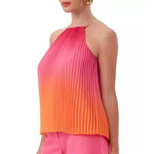 Trina Turk 'Nayarit' sleeveless top featuring sleek chain straps and an ombre dye on a pleated chiffon fabrication.