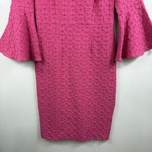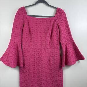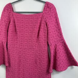 Trina Turk New Favor Pink Square Neck Bell Sleeve Dress Size 4 Sheath Textured