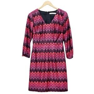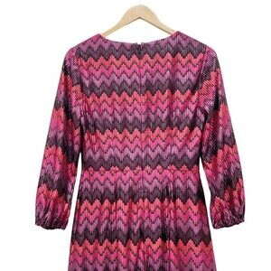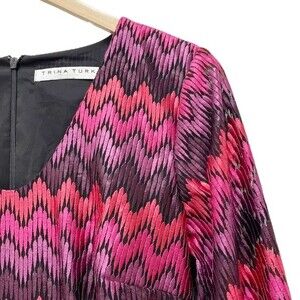 Trina Turk Nicole Dress Shimmer Embroidered Chevron Midi Dress Size Small 4/6