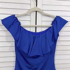 Trina Turk One Piece Swimsuit Size 10 Classic Off Shoulder Blue