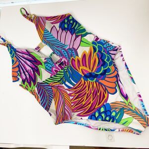 Trina Turk One Piece Swimsuit Size 8 10? Multi Paradise Plume V Plunge Tropical