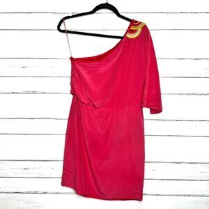 Trina Turk One Shoulder Silk Embroidered Dress Pink Size Small