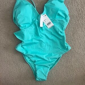Trina Turk One-Piece Swimsuit Aqua Ruffle Front NWT Size 6