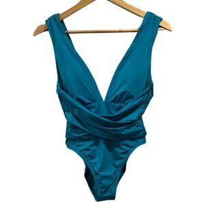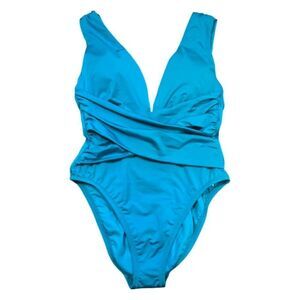 Trina Turk One piece Front Wrap Slimming turquoise swimsuit Size 6 , NWT