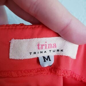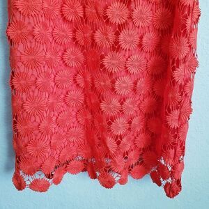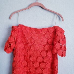 Trina Turk Orange Floral Lace Overlay Off Shoulder Dress