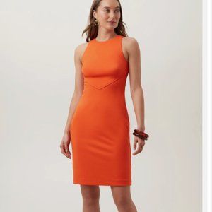Chic sleeveless dress by Trina Turk. Vibrant orange hue. Perfect for any occasion.