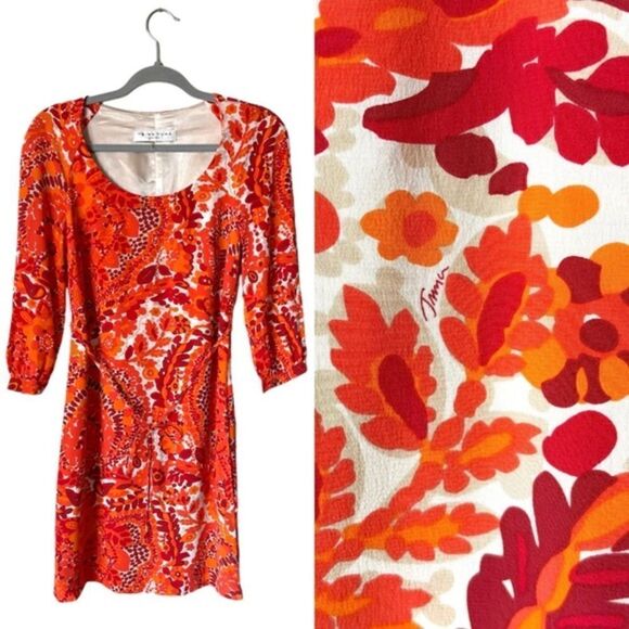Trina Turk Orange Mini Dress Floral Print Blouse Size 0