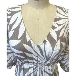 Trina Turk Out of Office Linen Palm Front Print Midi Dress Size Small