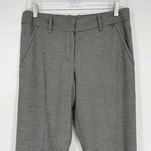 Trina Turk Pants Women Sz 6 Plaid Straight-Leg Mid-Rise Business Flat Front Gray