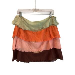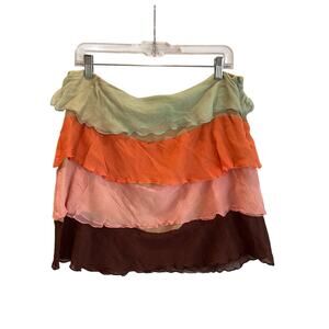 Trina Turk Pastel Tiered Ruffle Mini Skirt Boho Y2K Lettuce Hem Size 6