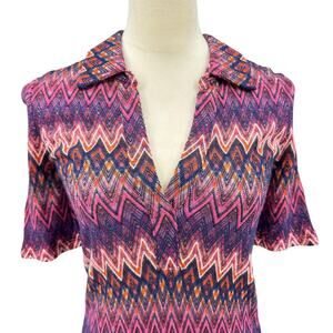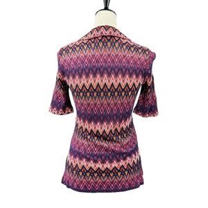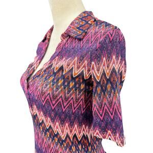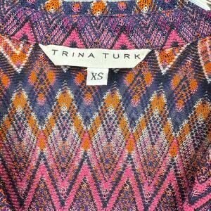 Trina Turk Peru Colorful Chevron Open Knit Collared V-neck Retro Revival Top