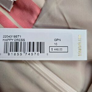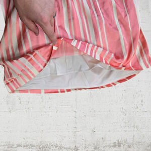 Trina Turk Pink White Striped Ruffle Neck Sleeveless Straight Mini Dress Size 10