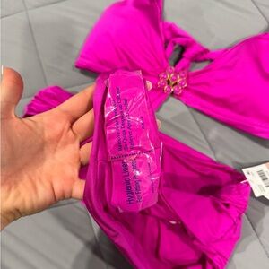 Stylish and vibrant pink set. Only ever tried on, has the sanitary sticker. Such an amazing set, the top just ended up being too small (38ddd).