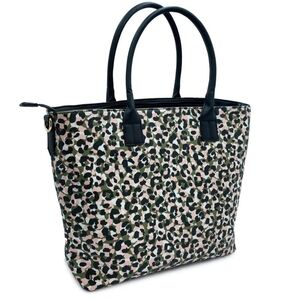 Stylish Trina Turk pink and black leopard print tote. Features black handles and zipper pocket. Purchased brand new and never used. Brand new with tags in original package. Very beautiful bag.