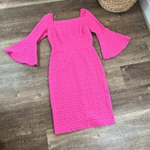 Trina Turk Pink Favor Bell Flare Sleeve Dress Textured Floral