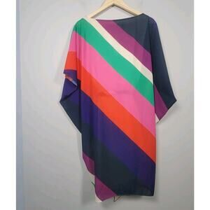 Trina Turk Poncho Dress M/L Multicolor Stripe Belted Kimono Sleeve Boho Beach