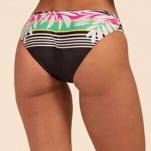 Hipster silhouette. Angled side tabs. Allover leaf/stripe print.