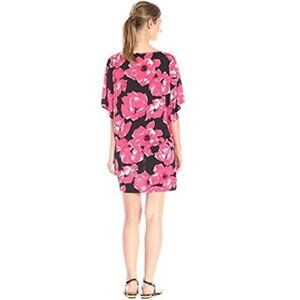 A bold, colorful print & fluttery dolman sleeves put a summery spin on a swingy shift dress crafted from lightweight, stretchy jersey.