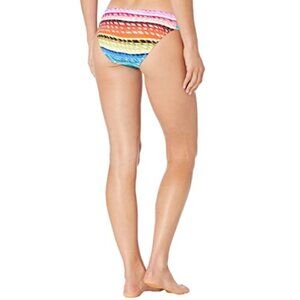 Hipster silhouette. Allover stripe print. Moderate coverage. Lined.