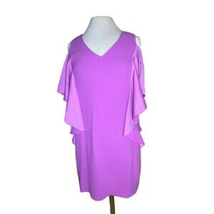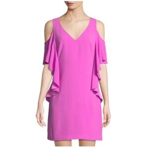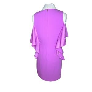 Trina Turk Purple Pink Lambada Ruffled Cold Shoulder Sheath Dress Size 2 barbie