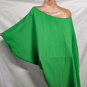 Meant to be worn on left shoulder and off right shoulder (if worn on opposite shoulders, hem will be very short)