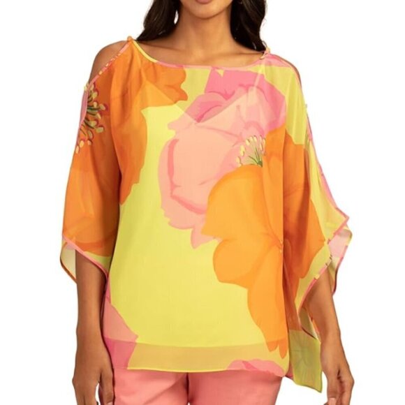 Trina Turk "Ravishing" Floral-Print Cold-Shoulder Top, Aurora Multi