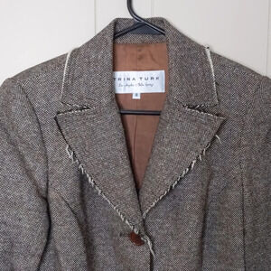 Trina Turk Raw Edge Tweed Bell Sleeve Blaz…