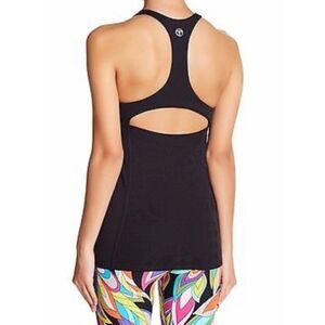 Trina Turk black racer back, athletic tank top in good condition. Approximately 16 inches from armpit to armpit, 14 inches across the waist, 22 inches long. Padded in the chest. From a pet and smoke free house. Happy to bundle!