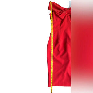 This Trina Turk red sheath dress is pure elegance with a bold twist. Designed with an off-shoulder portrait neckline and an eye-catching bow detail, this dress blends vintage charm with modern sophistication. The sleek crepe fabric hugs your figure beautifully, making it a perfect choice for weddings, cocktail parties, date nights, and special events.