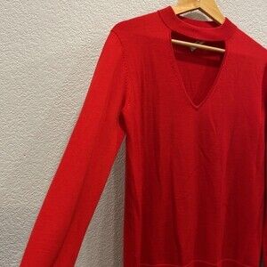 Trina Turk Red Merino Wool Graham Cutout V Neck Sweater Pagoda Red Size Small