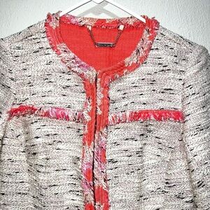 In good condition. Trina Turk Red White La Brea 3/4 Sleeve Jacket Blazer Women Size 2