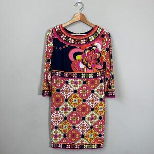 Trina Turk Retro Mod Shift Mini Dress Women's 0 Multicolor Floral Geometric Chic