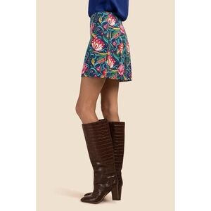 Like new without tags! Tried on but never worn. This Trina Turk ‘Rico’ mini skirt features a striking Bengal Blue floral print that adds a vibrant touch to any wardrobe. Made with stretch cotton for all-day comfort, this high-rise skirt has a flattering A-line silhouette. Pair it with the matching blazer for a chic office look or dress it up for a night out. The back zipper completes the polished design.