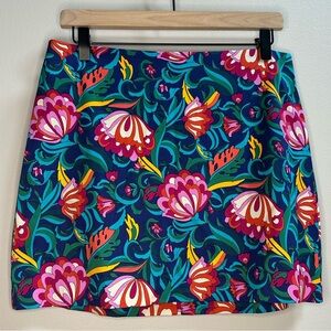 Trina Turk floral mini skirt Bengal Blue print A-line high rise back zipper tailored skirt women’s designer skirt spring fashion vibrant pattern chic workwear night out skirt fitted waist mini dressy skirt cotton blend casual chic bold pattern