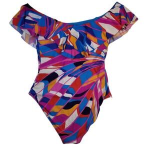 Trina Turk Rio Ruffle Off Shoulder One Piece Swimsuit Size 10 Resort