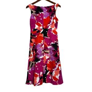Trina Turk Robles Watercolor Sleeveless Halter Style Keyhole Back Mini Dress Stretchy Size 2 Pink Black Purple Orange White