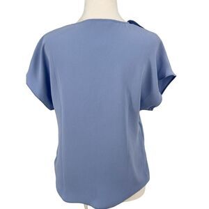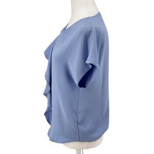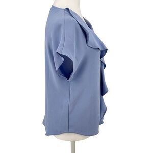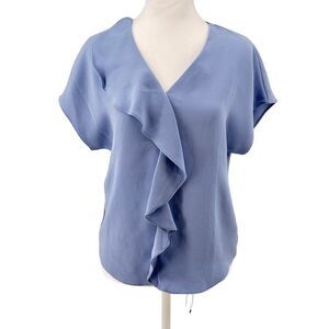 💎 Trina Turk Ruffle Front Blouse XS – Light Blue Dressy Work Top Made in USA