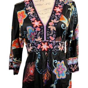 Trina Turk SILK Tunic Dress Black Size 4 Floral NWOT MSRP 360 COTTAGECORE Boho