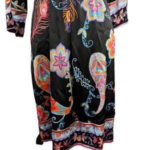 New, without tags. Black with colorful flowers. Boho style. High, gathered waist. V-neck, 3/4 sleeves. Casual but dressy style.