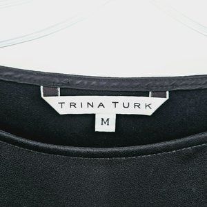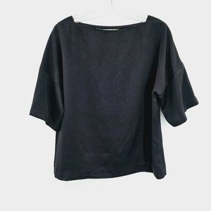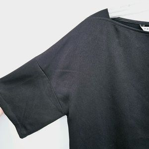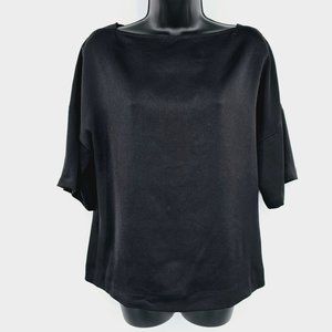 Trina Turk Saidee 2 Blouse M Black Woven Boxy Half Sleeve USA Made Drop Shoulder