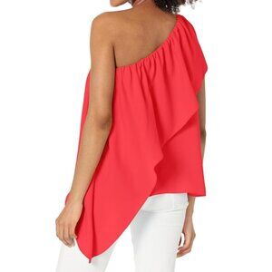 Trina Turk 'Satisfied' top featuring silky, satin-back crepe, one-shoulder styling and a cascading, asymmetrical ruffle.