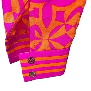 Tags: silk tunic blouse resort wear pink orange bright vacation business.