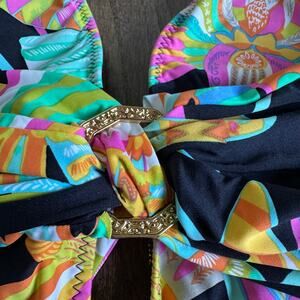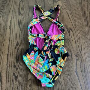 Trina Turk Sea Garden Floral Print One Piece Cut Out Swim Suit Black Size 6