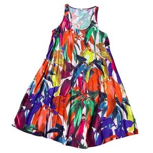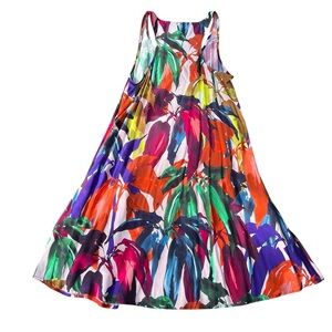 Trina Turk Seraphina Autumn jungle print razor back tropical floral colorful mini dress with pockets