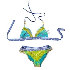 Trina Turk Seychelles Triangle Bikini Top w/Matching Hipster Bottoms Size 8 / 10