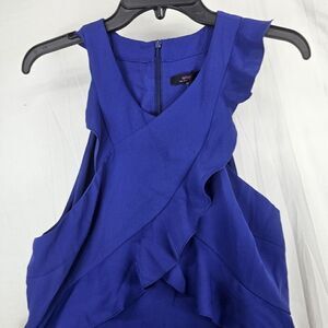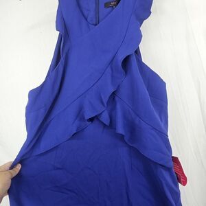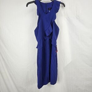 Trina Turk Sheath Dress Blue Ruffled Trim Sleeveless Halter Zip Size 12 NEW