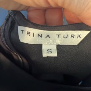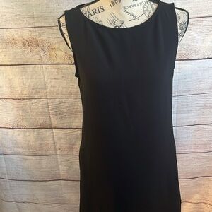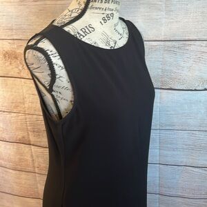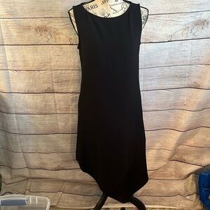 Trina Turk Sheath Dress Sleeveless Asymmetrical Hem Pockets Size Small Black