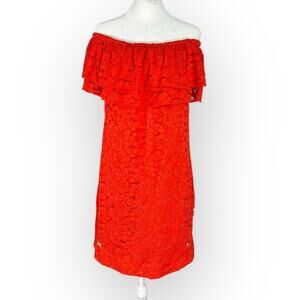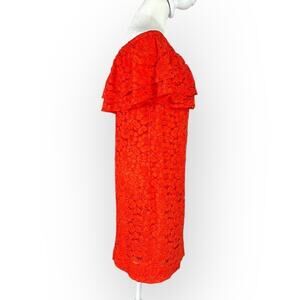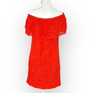 Trina Turk Sheath Dress Women's Medium Orange Red Lace Off Shoulder Tiered Mini