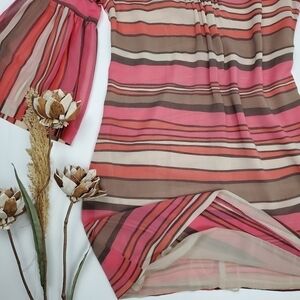 Trina Turk Sheer Pink Bell Sleeve Striped Boho Dress 2