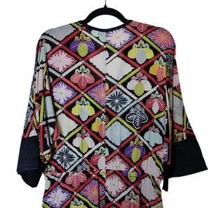 Trina Turk sheer silk chiffon geometric floral kaftan dress. Women's size 10.